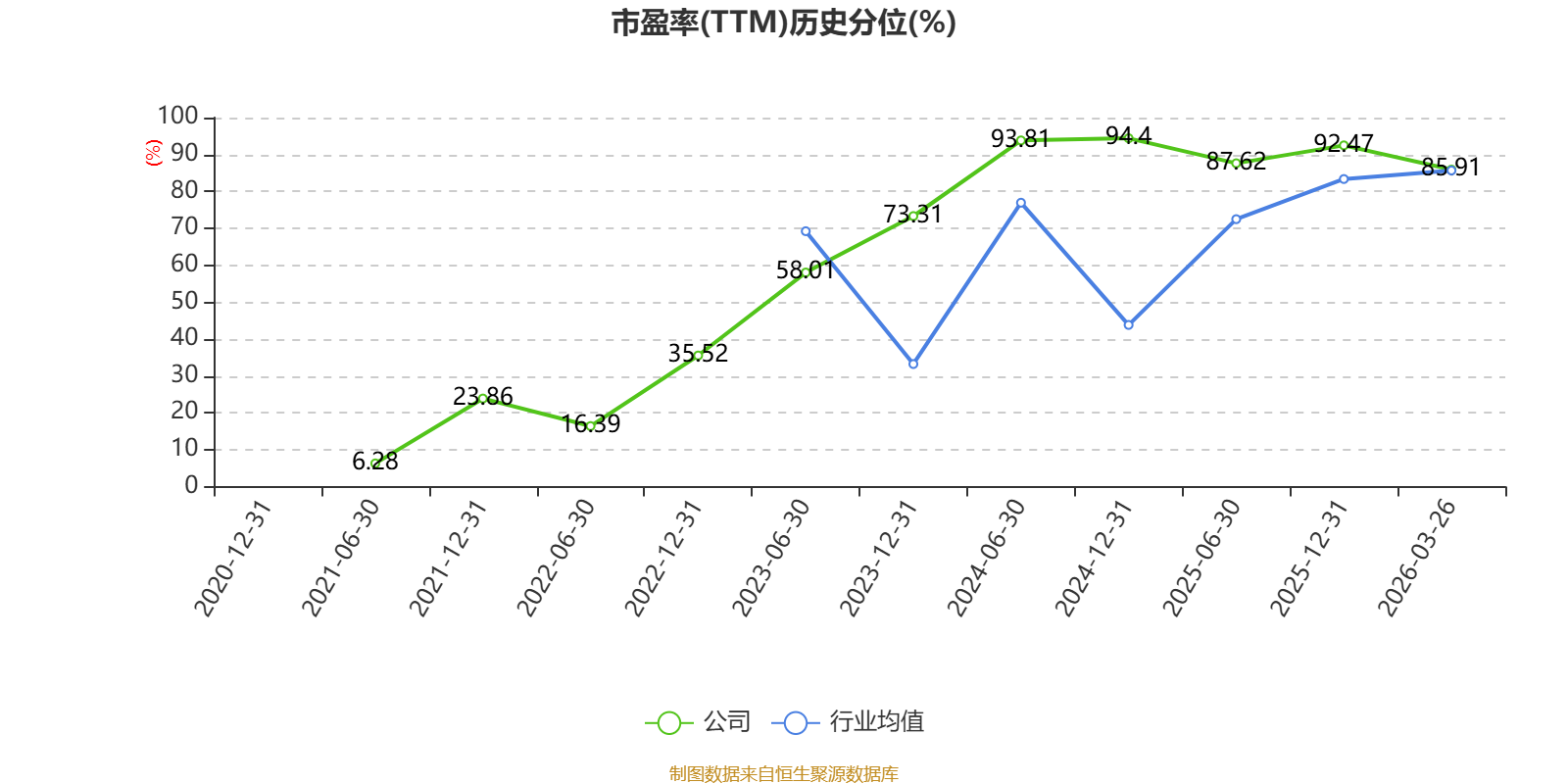 市盈率、市净率为负时,不显示当期分位数,会导致折线图中断。