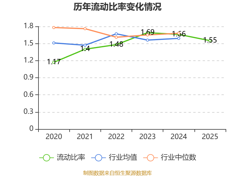 2025年,公司流动比率为1.55,速动比率为0.96。