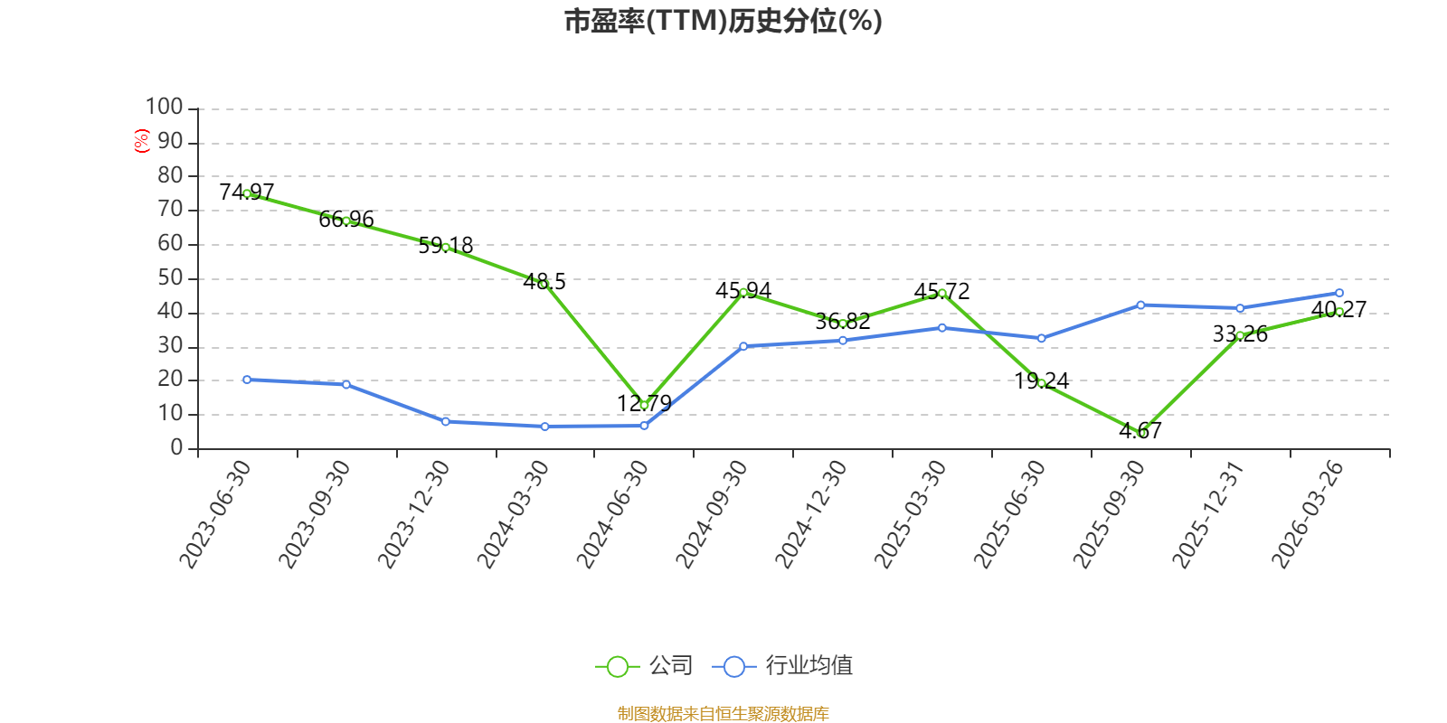 市盈率、市净率为负时,不显示当期分位数,会导致折线图中断。