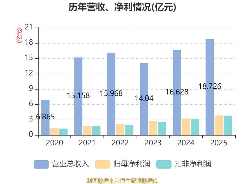 中证智能财讯中科环保(301175)3月27日披露2025年年度报告。2025年,公司实现营业总收入18.73亿元,同比增长12.62%;归母净利润3.82亿元,同比增长19.04%;扣非净利润3.76亿元,同比增长19.10%;经营活动产生的现金流量净额为7.71亿元,同比增长13.05%;报告期内,中科环保基本每股收益为0.26元,加权平均净资产收益率为10.47%。公司2025年度分配预案为:拟向全体股东每10股派现1元(含税)。