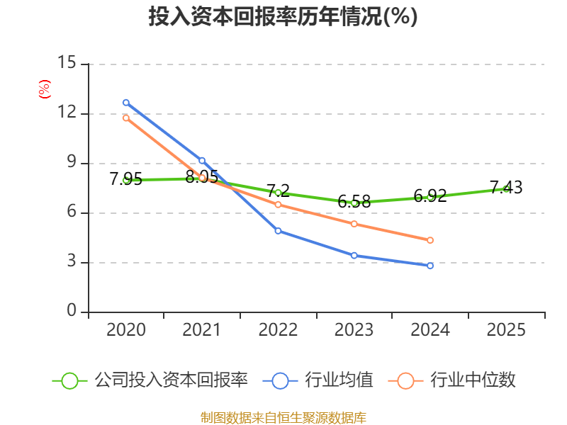 数据显示,2025年公司加权平均净资产收益率为10.47%,较上年同期上升1.25个百分点。公司2025年投入资本回报率为7.43%,较上年同期上升0.51个百分点。