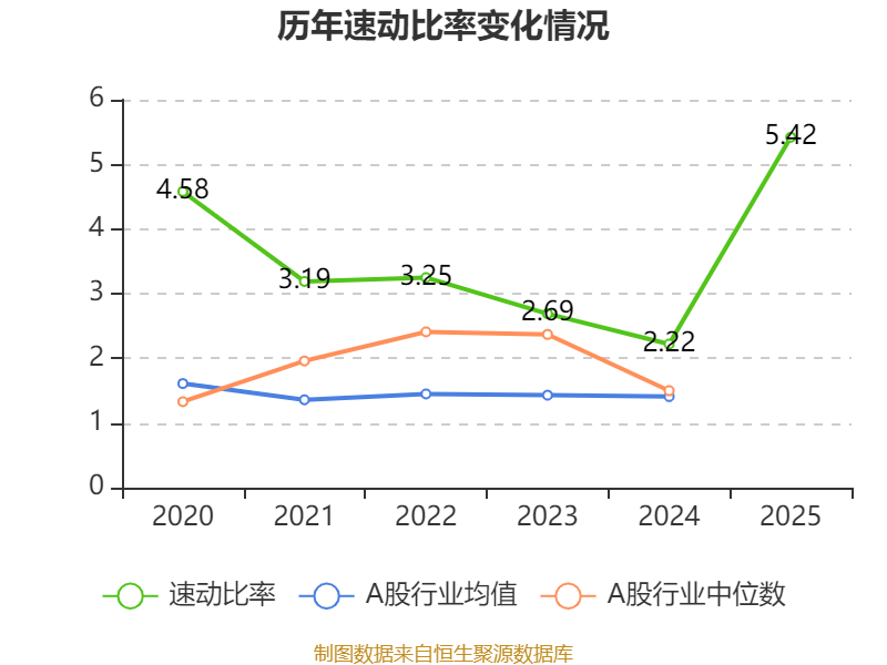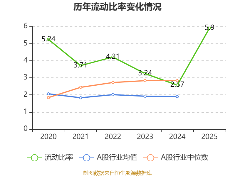 2025年,公司流动比率为5.90,速动比率为5.42。