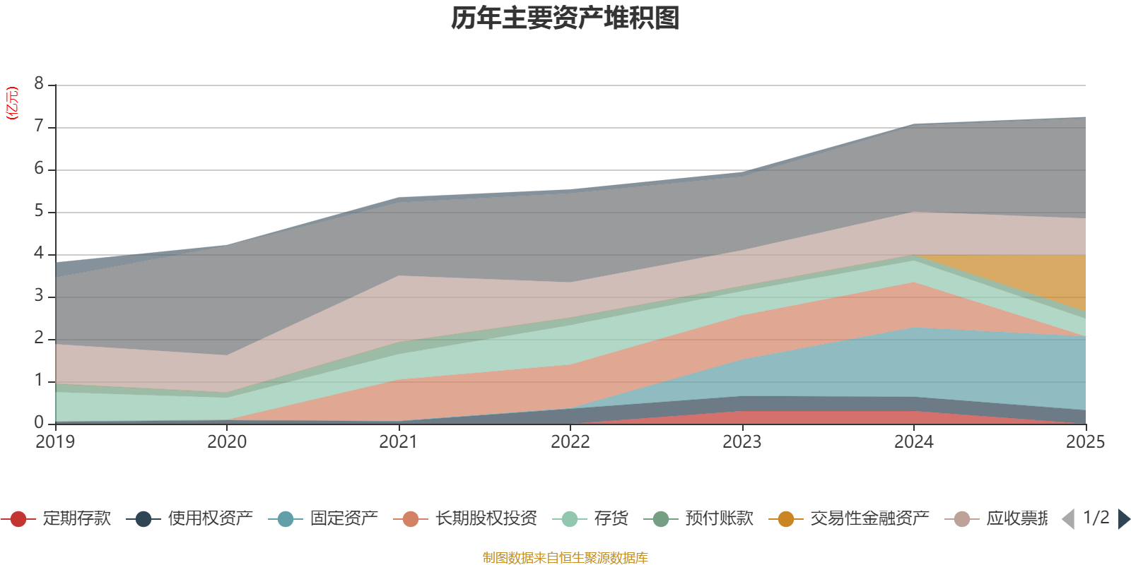 资产重大变化方面,截至2025年末,公司交易性金融资产占公司总资产的18.34%,上期末为0;长期股权投资较上期末减少100%,占公司总资产比重下降15.07个百分点;定期存款较上期末减少100%,占公司总资产比重下降4.24个百分点;货币资金较上期末增加16.46%,占公司总资产比重上升3.98个百分点。