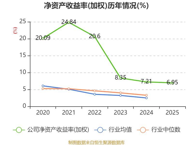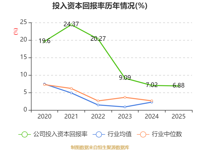 数据显示,2025年公司加权平均净资产收益率为6.95%,较上年同期下降0.26个百分点。公司2025年投入资本回报率为6.88%,较上年同期下降0.14个百分点。