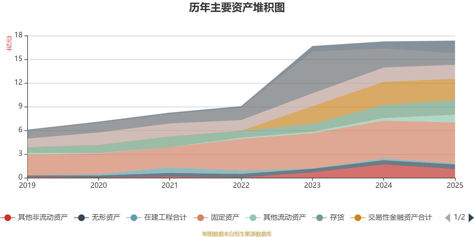 资产重大变化方面,截至2025年末,公司货币资金较上年末减少39.48%,占公司总资产比重下降5.57个百分点;其他流动资产较上年末增加192.2%,占公司总资产比重上升3.73个百分点;其他非流动资产较上年末减少34.85%,占公司总资产比重下降3.43个百分点;一年内到期的非流动资产较上年末增加236.65%,占公司总资产比重上升2.84个百分点。