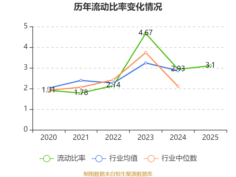 2025年,公司流动比率为3.1,速动比率为2.51。