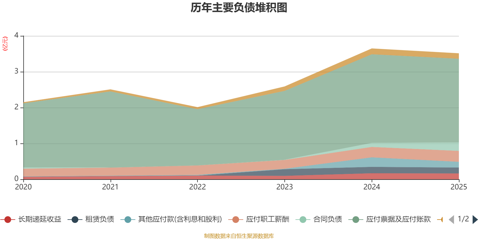 负债重大变化方面,截至2025年末,公司应付票据及应付账款较上年末减少5.56%,占公司总资产比重下降0.88个百分点;合同负债较上年末增加109.02%,占公司总资产比重上升0.7个百分点;其他应付款(含利息和股利)较上年末减少40.32%,占公司总资产比重下降0.63个百分点;应交税费较上年末减少39.69%,占公司总资产比重下降0.19个百分点。