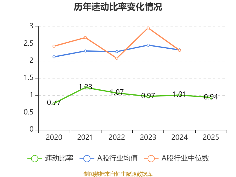 2025年,公司流动比率为1.24,速动比率为0.94。