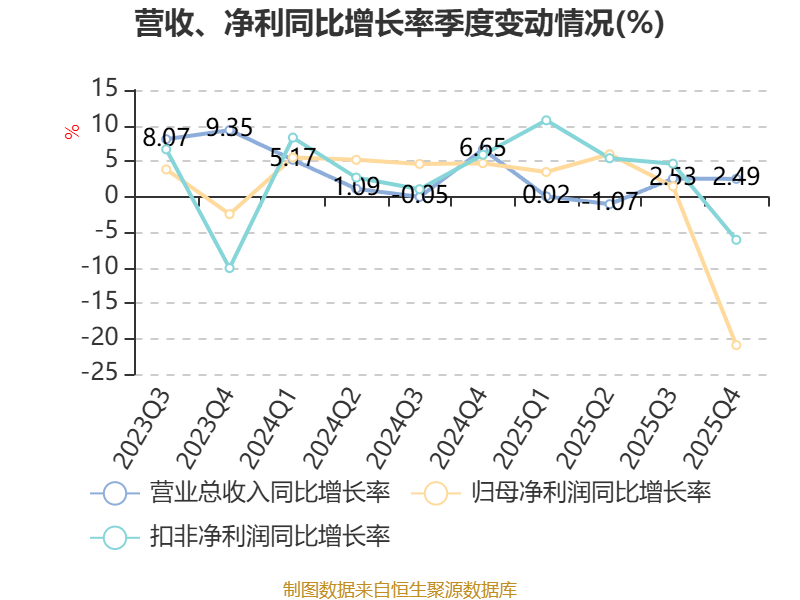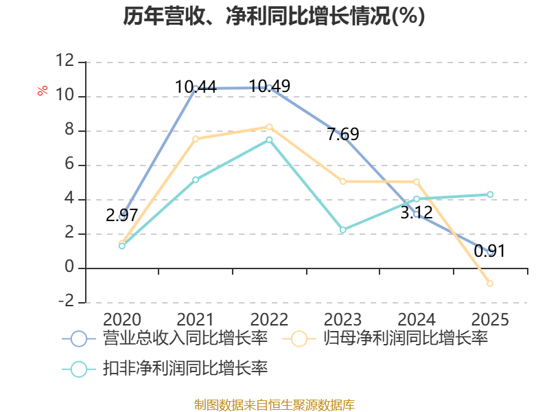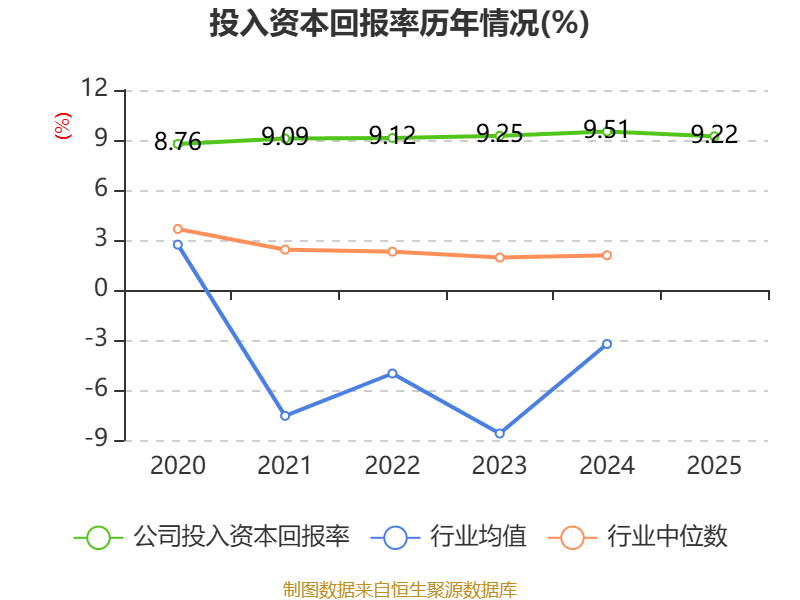 数据显示,2025年公司加权平均净资产收益率为9.9%,较上年同期下降0.5个百分点。公司2025年投入资本回报率为9.22%,较上年同期下降0.29个百分点。
