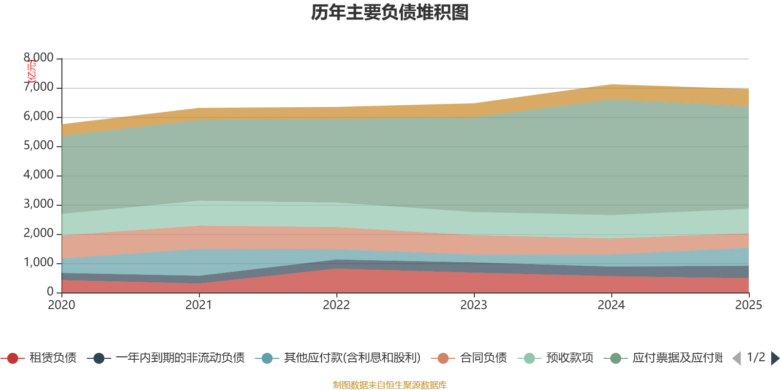 负债重大变化方面,截至2025年末,公司应付票据及应付账款较上年末减少11.1%,占公司总资产比重下降2.28个百分点;其他应付款(含利息和股利)较上年末增加49.08%,占公司总资产比重上升0.95个百分点;长期借款占公司总资产的0.47%,上年末为0;一年内到期的非流动负债较上年末增加30.74%,占公司总资产比重上升0.46个百分点。
