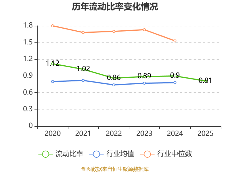 2025年,公司流动比率为0.81,速动比率为0.78。