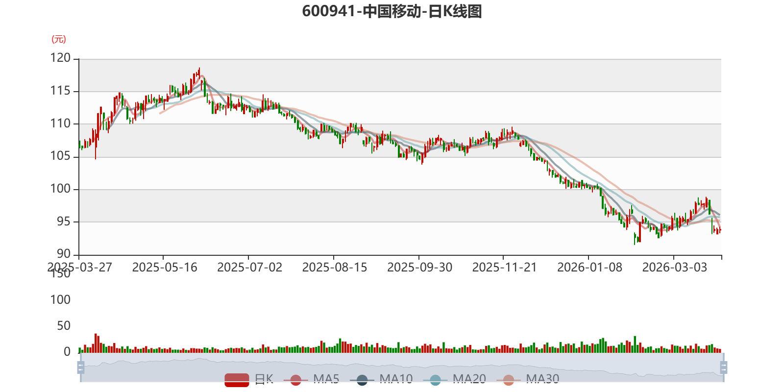 资料显示,公司的主营业务涵盖包括移动通信、宽带网络、蜂窝物联和卫星互联的通信服务,数据中心、移动云和移动云应用的算力服务,以及数据算法、具身智能、数智文化、数智电商和行业数智服务的智能服务。