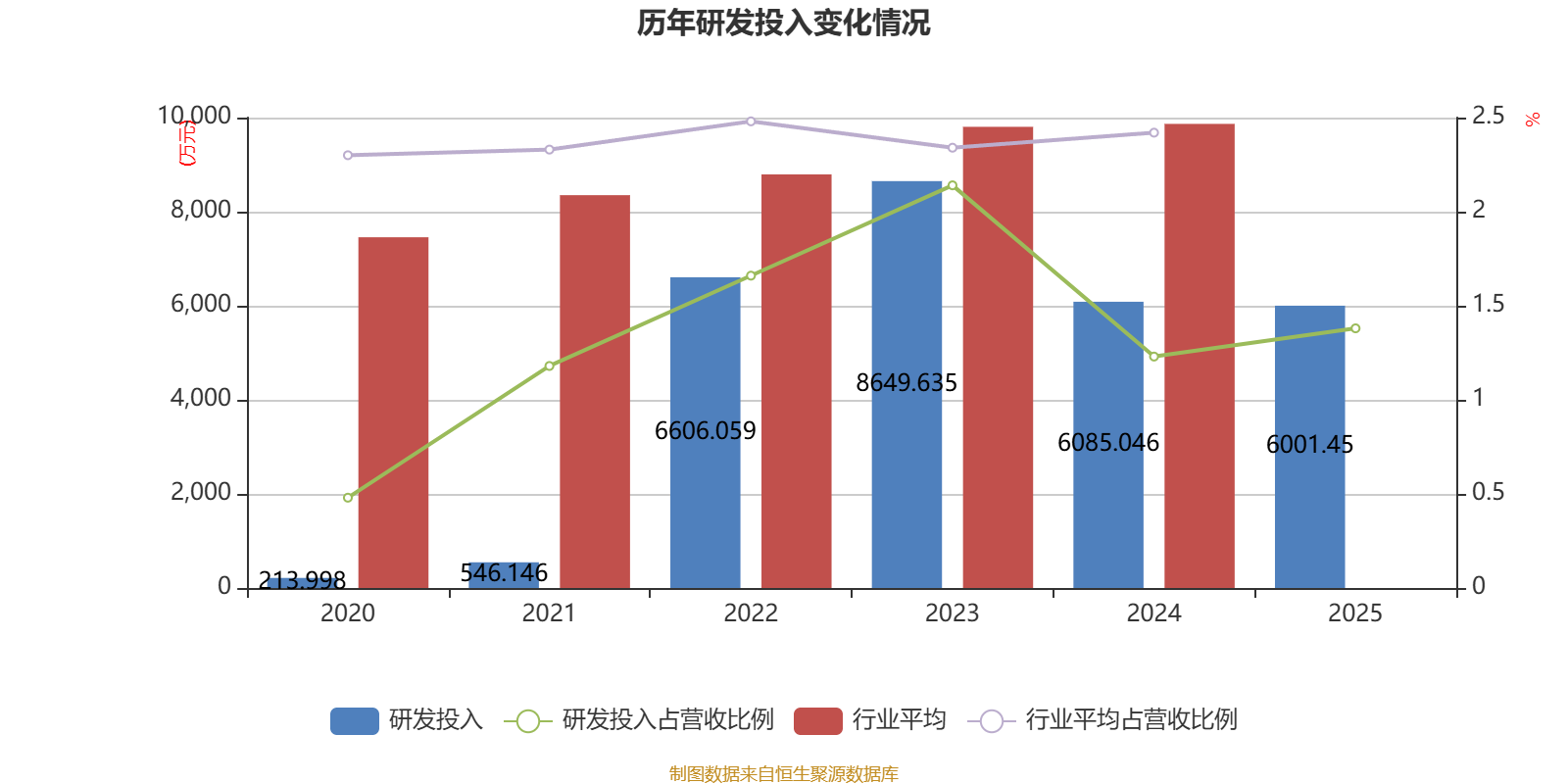 2025年全年,公司研发投入金额为6001.45万元,同比下降1.37%;研发投入占营业收入比例为1.38%,相比上年同期上升0.15个百分点。此外,公司全年研发投入资本化率为0%。