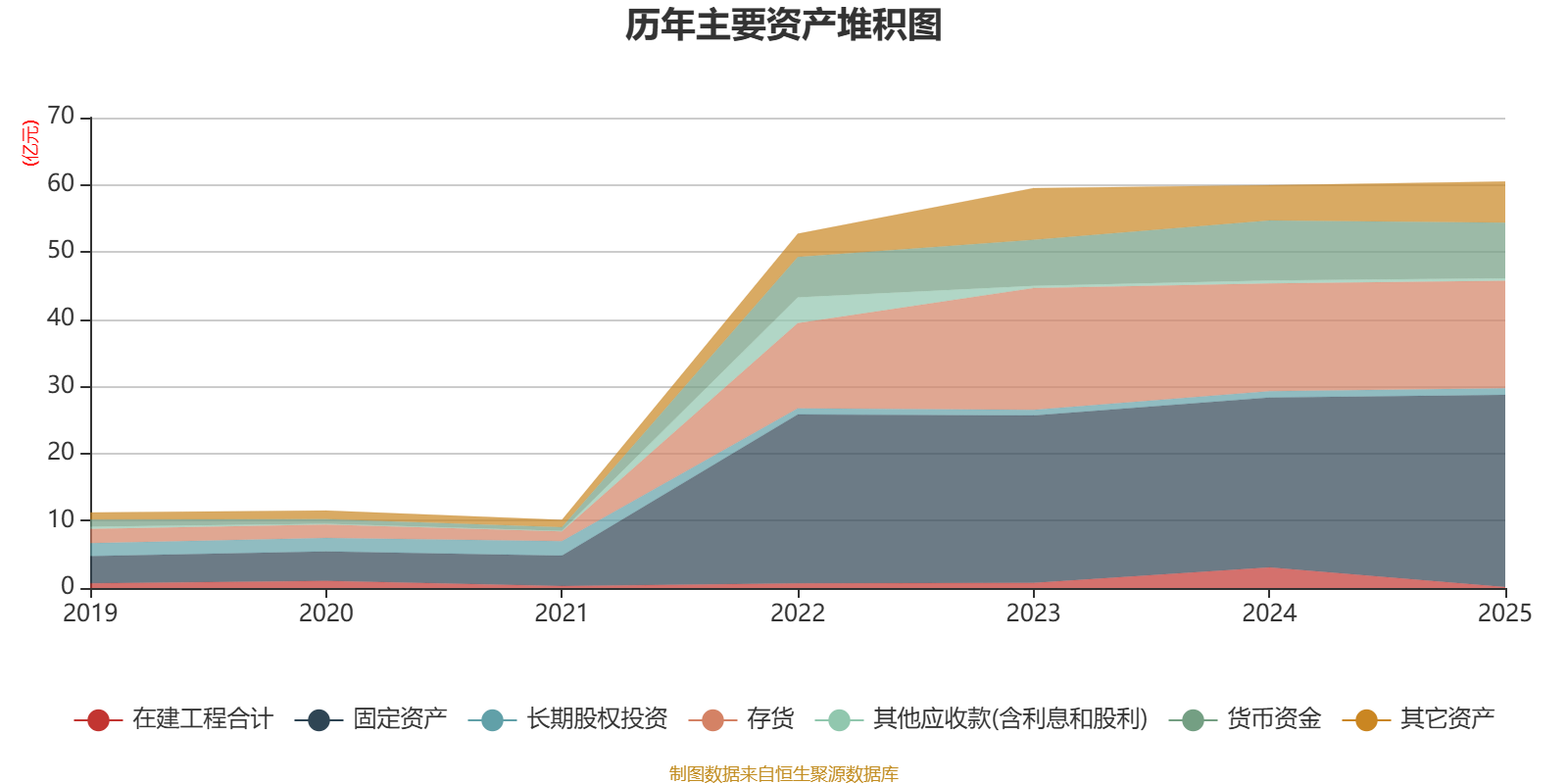 资产重大变化方面,截至2025年末,公司固定资产较上年末增加13.13%,占公司总资产比重上升5.12个百分点;在建工程合计较上年末减少95.61%,占公司总资产比重下降4.91个百分点;货币资金较上年末减少7.2%,占公司总资产比重下降1.19个百分点;预付款项较上年末增加269.72%,占公司总资产比重上升0.96个百分点。