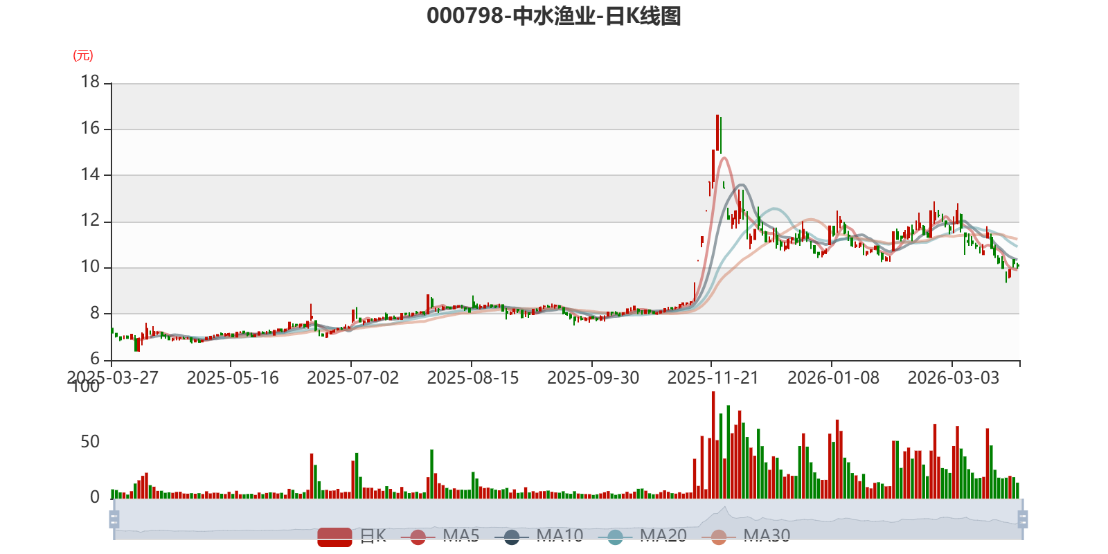 以3月26日收盘价计算,中水渔业目前市盈率(TTM)约为44.03倍,市净率(LF)约8.52倍,市销率(TTM)约0.85倍。
