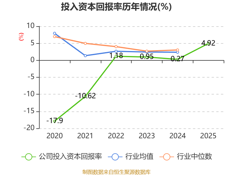 数据显示,2025年公司加权平均净资产收益率为21.08%,较上年同期上升46.52个百分点。公司2025年投入资本回报率为4.92%,较上年同期上升4.65个百分点。
