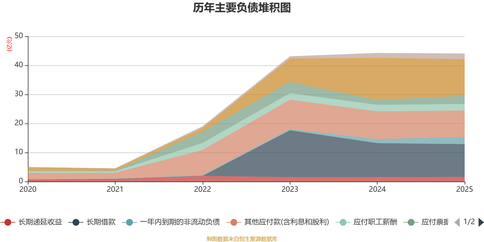 负债重大变化方面,截至2025年末,公司短期借款较上年末减少13.56%,占公司总资产比重下降3.47个百分点;应付票据及应付账款较上年末增加71.43%,占公司总资产比重上升1.96个百分点;一年内到期的非流动负债较上年末增加74.01%,占公司总资产比重上升1.68个百分点;长期应付款合计较上年末增加1545.01%,占公司总资产比重上升1.65个百分点。