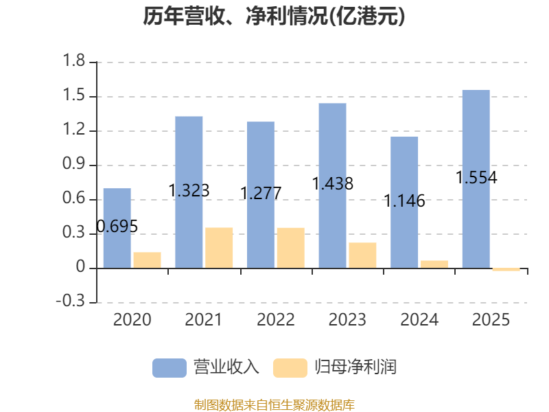 中证智能财讯永联丰控股(09882)3月26日披露2025年度报告。报告期内,公司实现营业收入1.55亿港元,同比增长35.55%;归母净利润亏损282.1万港元,上年同期盈利629万港元;据报告显示,永联丰控股基本每股收益为-0.004港元,平均净资产收益率为-2.08%。