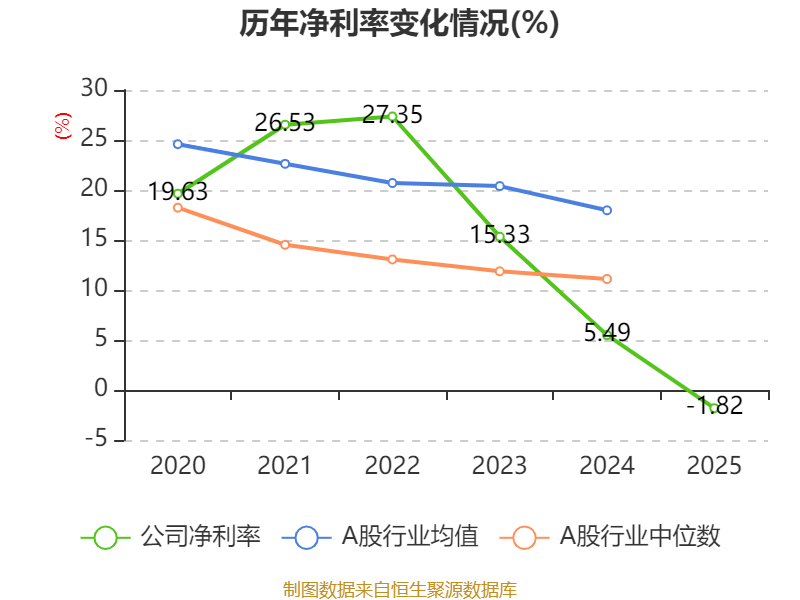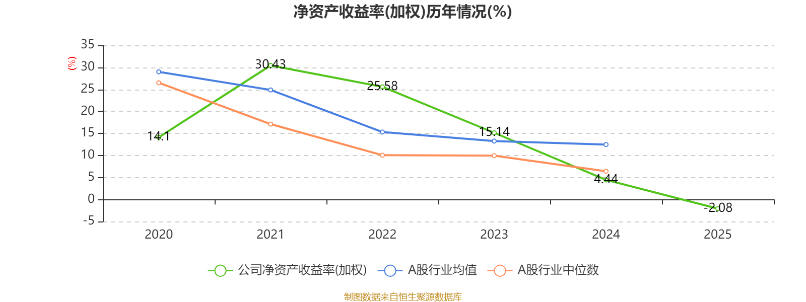 数据显示,2025年公司平均净资产收益率为-2.08%,较上年同期下降6.52个百分点。