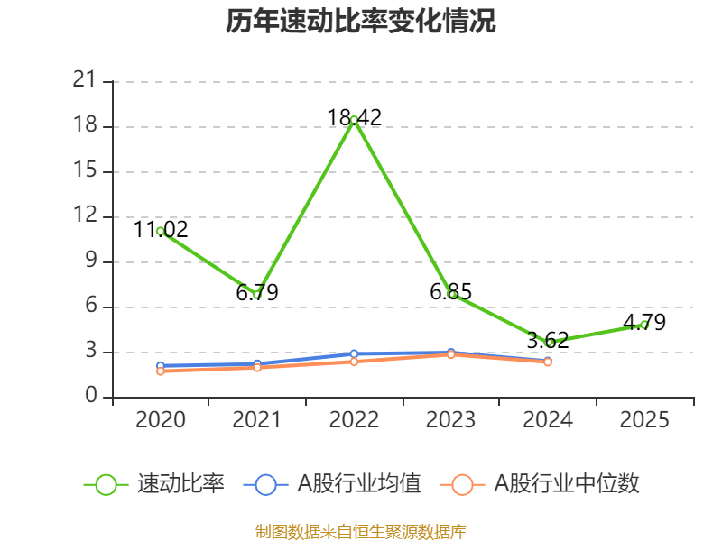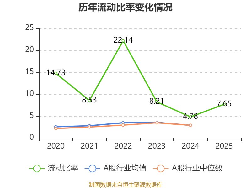2025年,公司流动比率为7.65,速动比率为4.79。