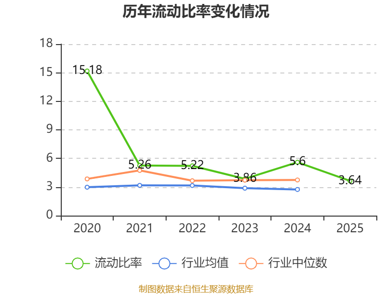 2025年,公司流动比率为3.64,速动比率为1.68。