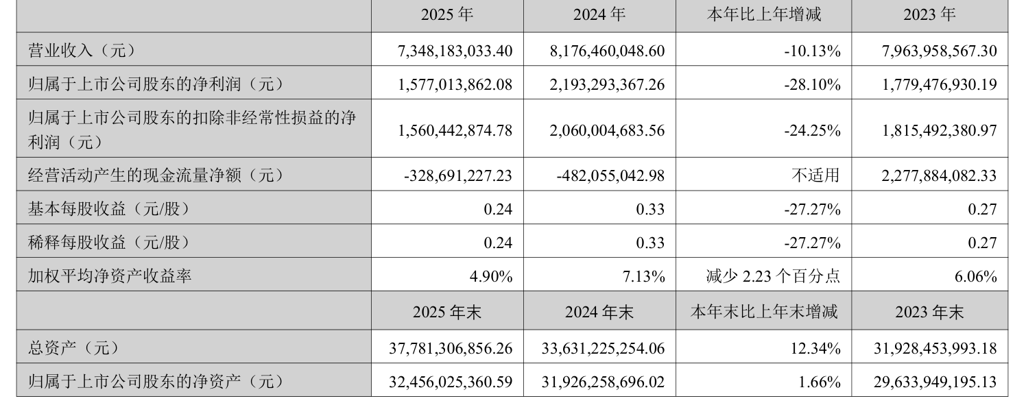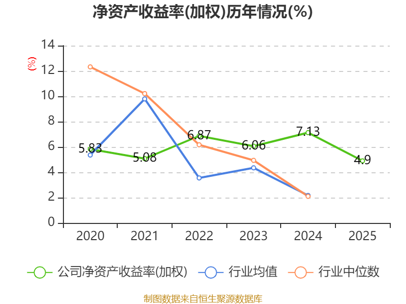 数据显示,2025年公司加权平均净资产收益率为4.9%,较上年同期下降2.23个百分点。公司2025年投入资本回报率为4.55%,较上年同期下降2.24个百分点。