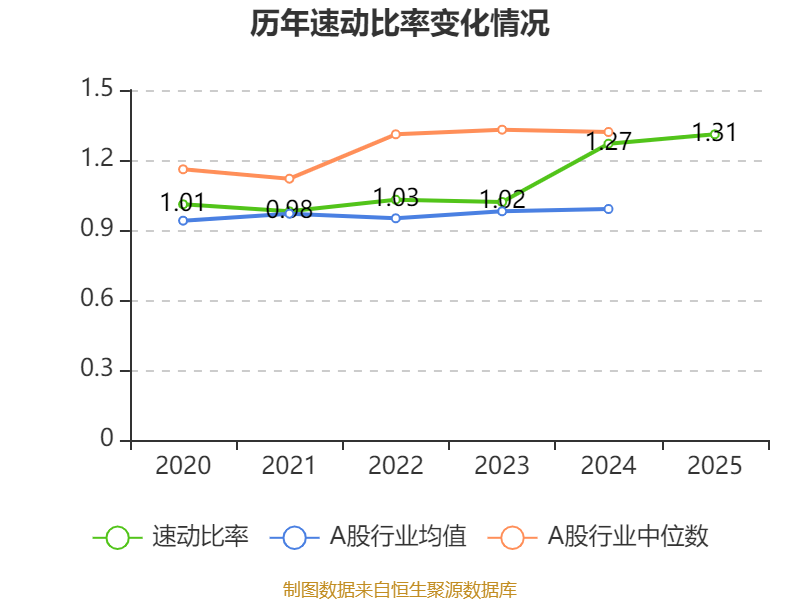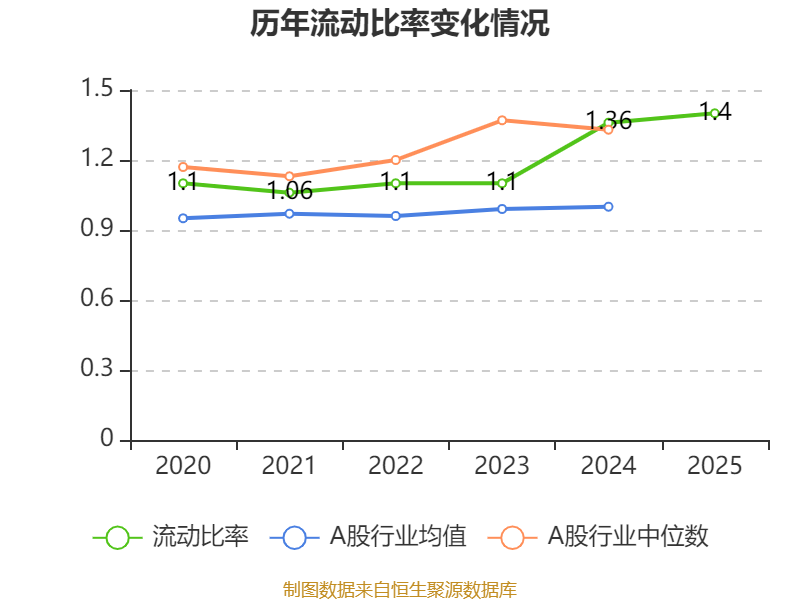 2025年,公司流动比率为1.40,速动比率为1.31。