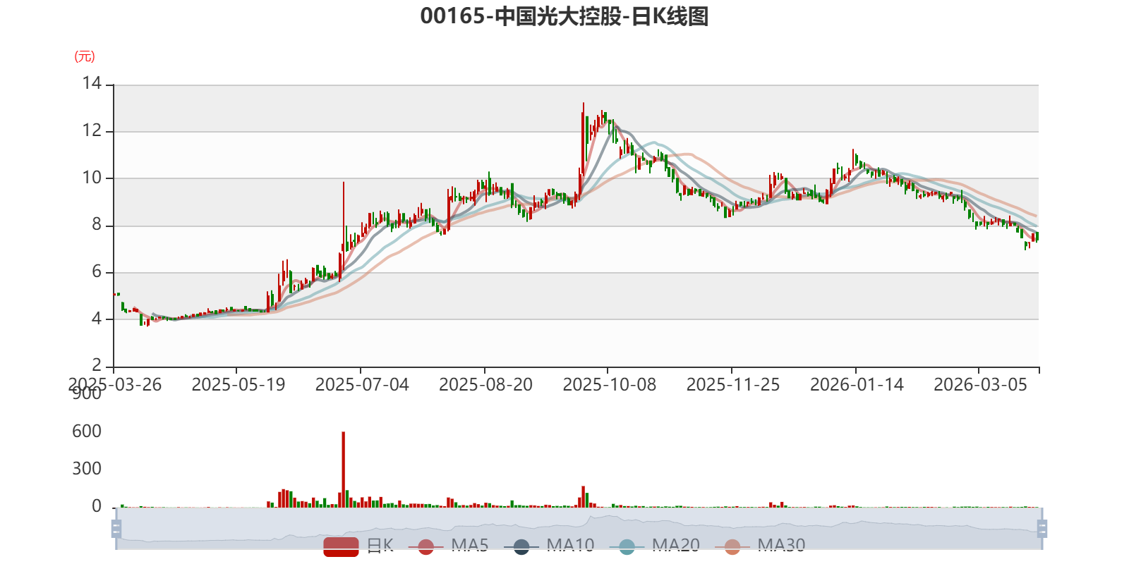 以3月26日收盘价计算,中国光大控股目前市净率(TTM)约0.46倍,市销率(TTM)约9.45倍。