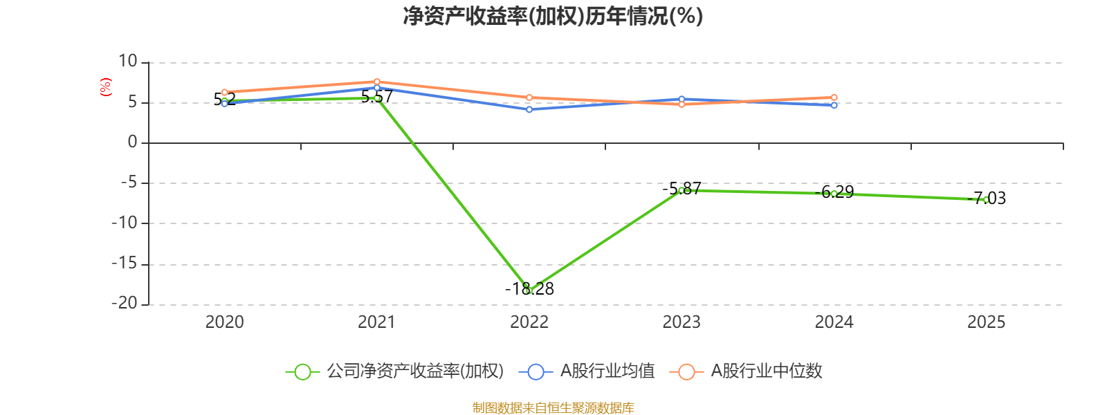 数据显示,2025年公司平均净资产收益率为-7.03%,较上年同期下降0.74个百分点。