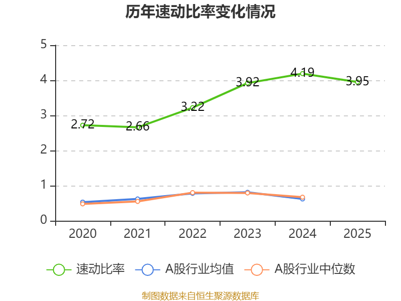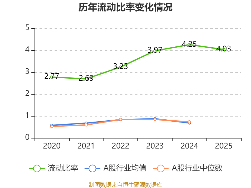 2025年,公司流动比率为4.03,速动比率为3.95。
