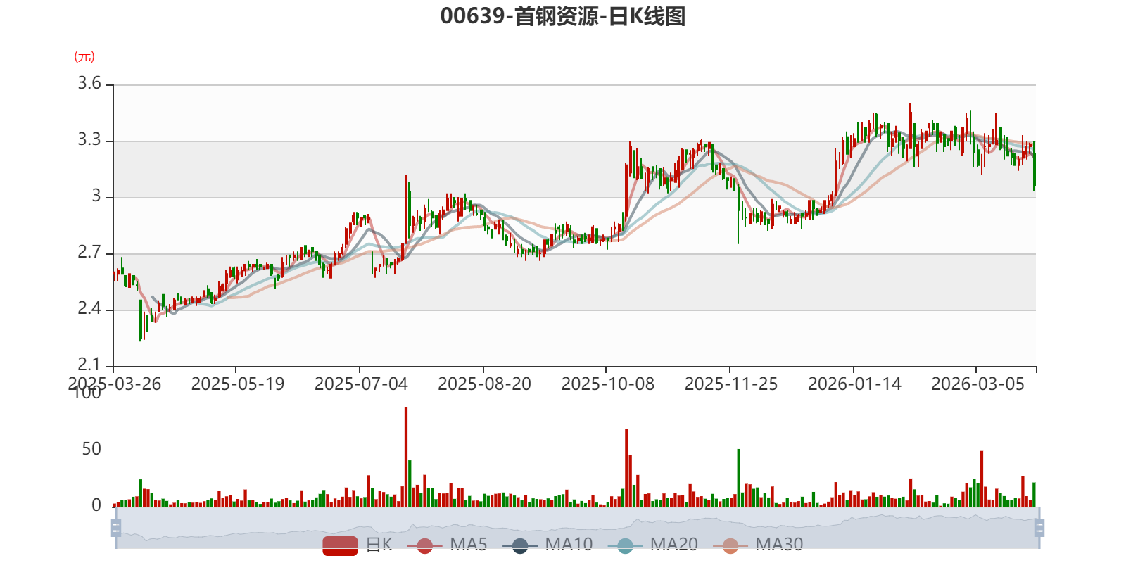 首钢资源:2025年净利润6.32亿港元 同比下降57.67%
