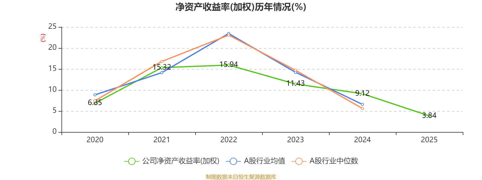 数据显示,2025年公司平均净资产收益率为3.84%,较上年同期下降5.28个百分点。