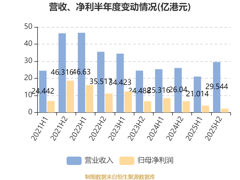 中证智能财讯首钢资源(00639)3月26日披露2025年度报告。报告期内,公司实现营业收入50.56亿港元,同比下降1.55%;归母净利润6.32亿港元,同比下降57.67%;据报告显示,首钢资源基本每股收益为0.1242港元,平均净资产收益率为3.84%。