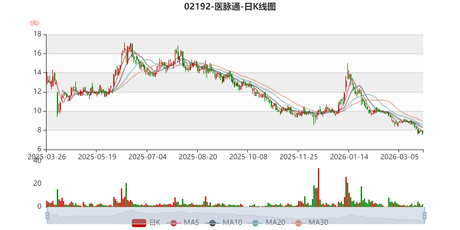 以3月26日收盘价计算,医脉通目前市盈率(TTM)约15.29倍,市净率(TTM)约1.05倍,市销率(TTM)约7.96倍。