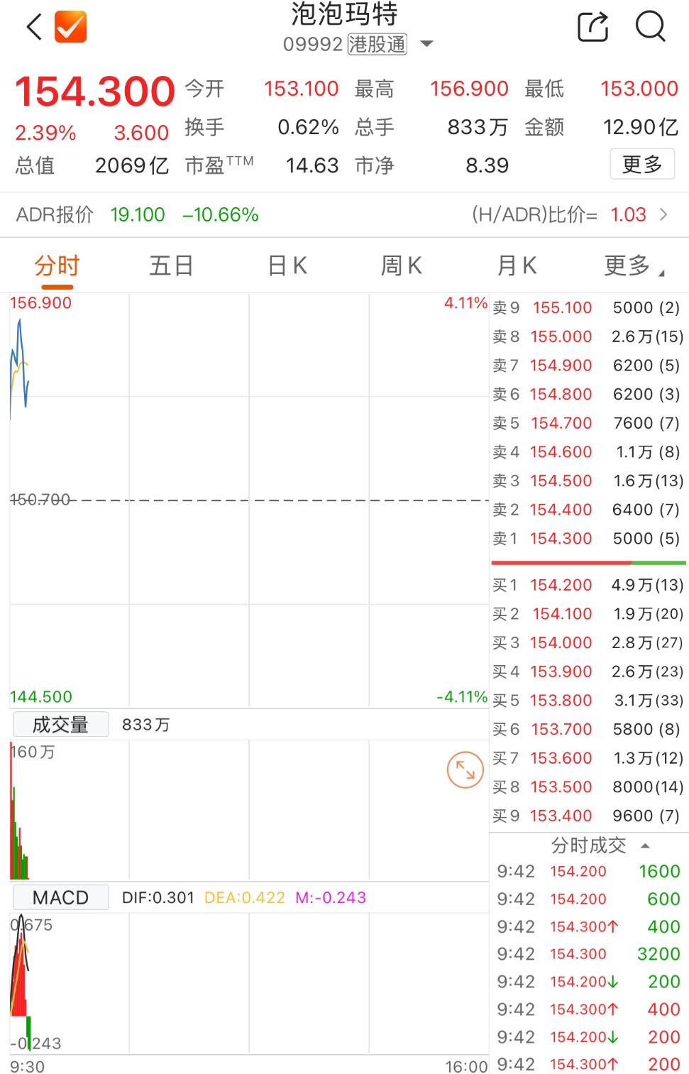 港股泡泡玛特盘中涨超4%