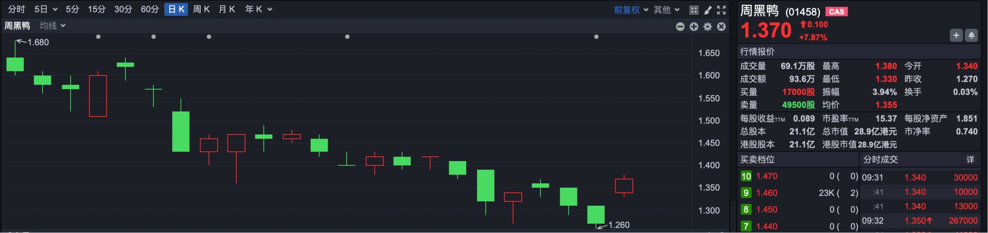 市场热点方面,随着消费股年报披露临近尾声,整个板块今日大面积反弹。其中,泡泡玛特早盘涨超3%,周黑鸭涨超7%,蒙牛乳业涨超4%,海底捞、周大福、东方甄选、百胜中国、达势股份等均有不错表现。