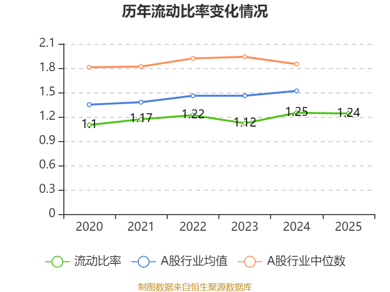 2025年,公司流动比率为1.24,速动比率为1。