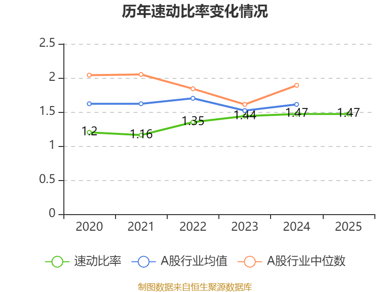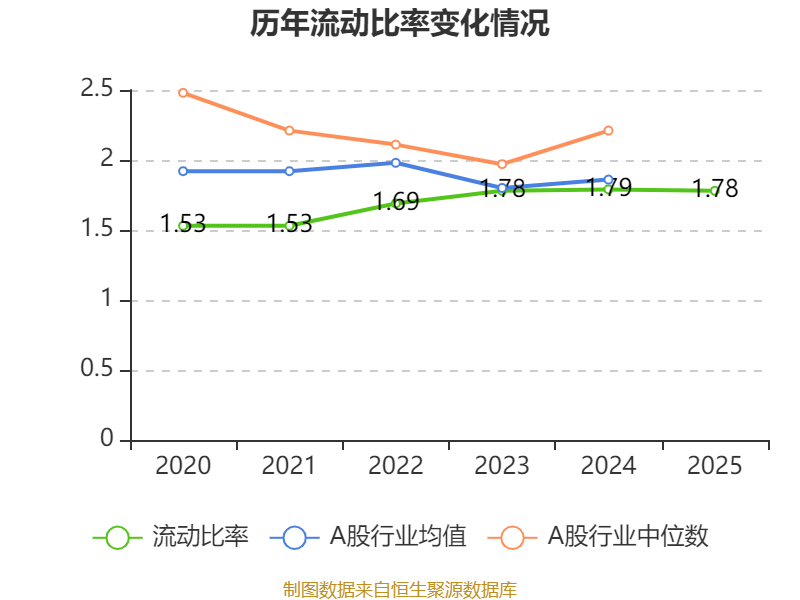 2025年,公司流动比率为1.78,速动比率为1.47。