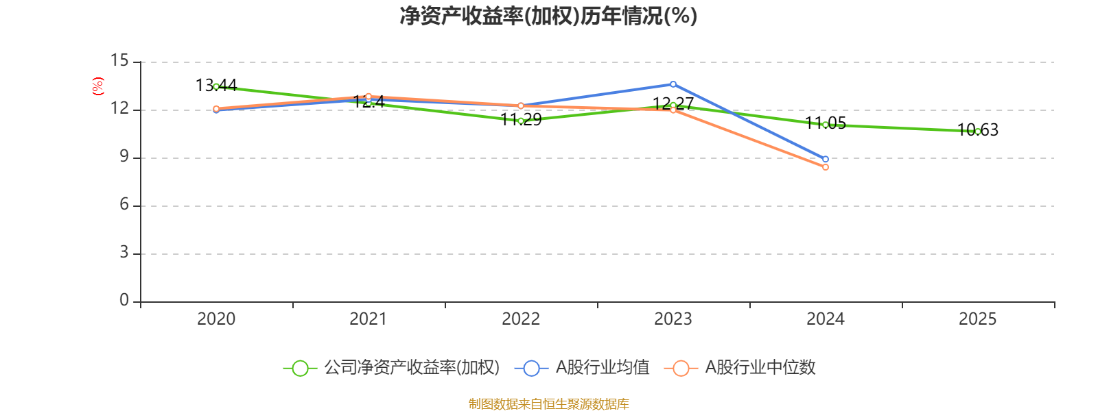 数据显示,2025年公司平均净资产收益率为10.63%,较上年同期下降0.42个百分点。