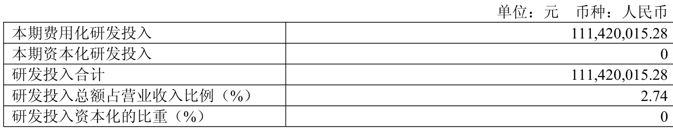 2025年全年,公司研发投入金额为1.11亿元,同比增长4.11%;研发投入占营业收入比例为2.74%,相比上年同期下降0.1个百分点。此外,公司全年研发投入资本化率为0%。