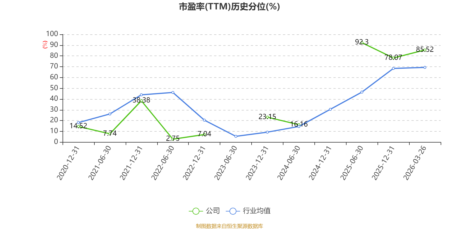 市盈率、市净率为负时,不显示当期分位数,会导致折线图中断。