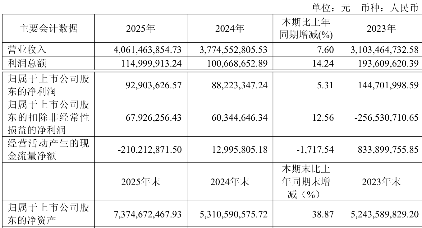 中证智能财讯武汉控股(600168)3月27日披露2025年年度报告。2025年,公司实现营业总收入40.61亿元,同比增长7.60%;归母净利润9290.36万元,同比增长5.31%;扣非净利润6792.63万元,同比增长12.56%;经营活动产生的现金流量净额为-2.1亿元,上年同期为1299.58万元;报告期内,武汉控股基本每股收益为0.08元,加权平均净资产收益率为1.44%。公司2025年度分配预案为:拟向全体股东每10股派现0.281元(含税)。