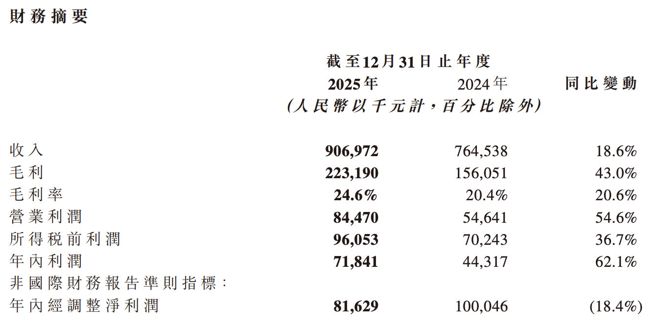 乐华娱乐(02306.HK)3月26日晚间披露2025年财报,公司全年实现收入人民币9.07亿元,同比增长18.63%;归属于公司拥有人的利润为6416.8万元,同比大幅增加36.7%;每股盈利为0.08元。公司2025年年内经调整净利润走低,为8162.9万元,较上年同期下滑18.4%。