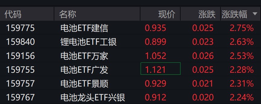 电池概念股走高,赣锋锂业涨停,天赐材料涨超3%,华友钴业、亿纬锂能、先导智能涨超2%。