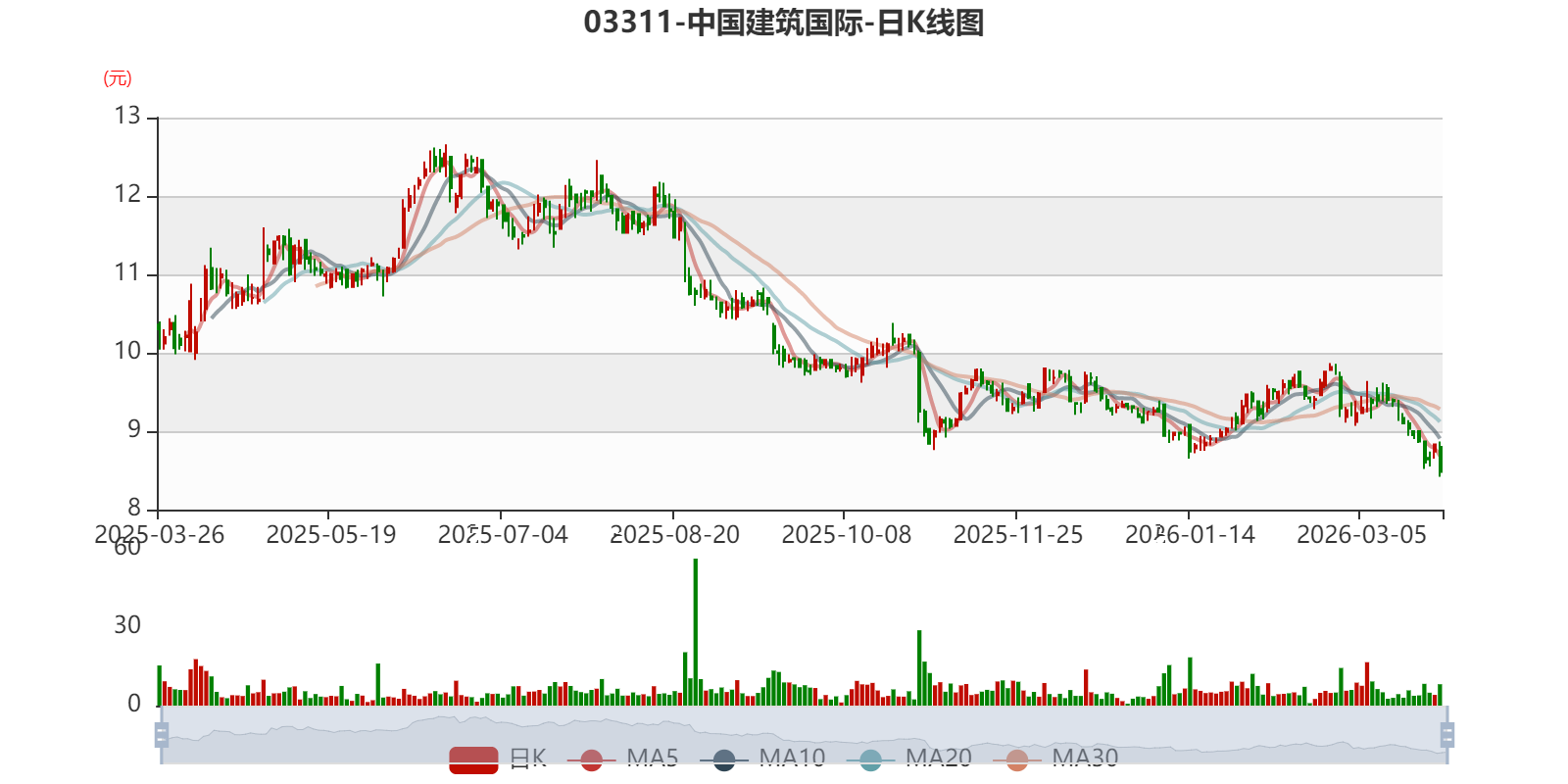 以3月26日收盘价计算,中国建筑国际目前市盈率(TTM)约4.71倍,市净率(TTM)约0.57倍,市销率(TTM)约0.4倍。