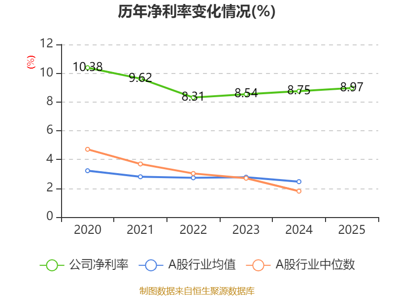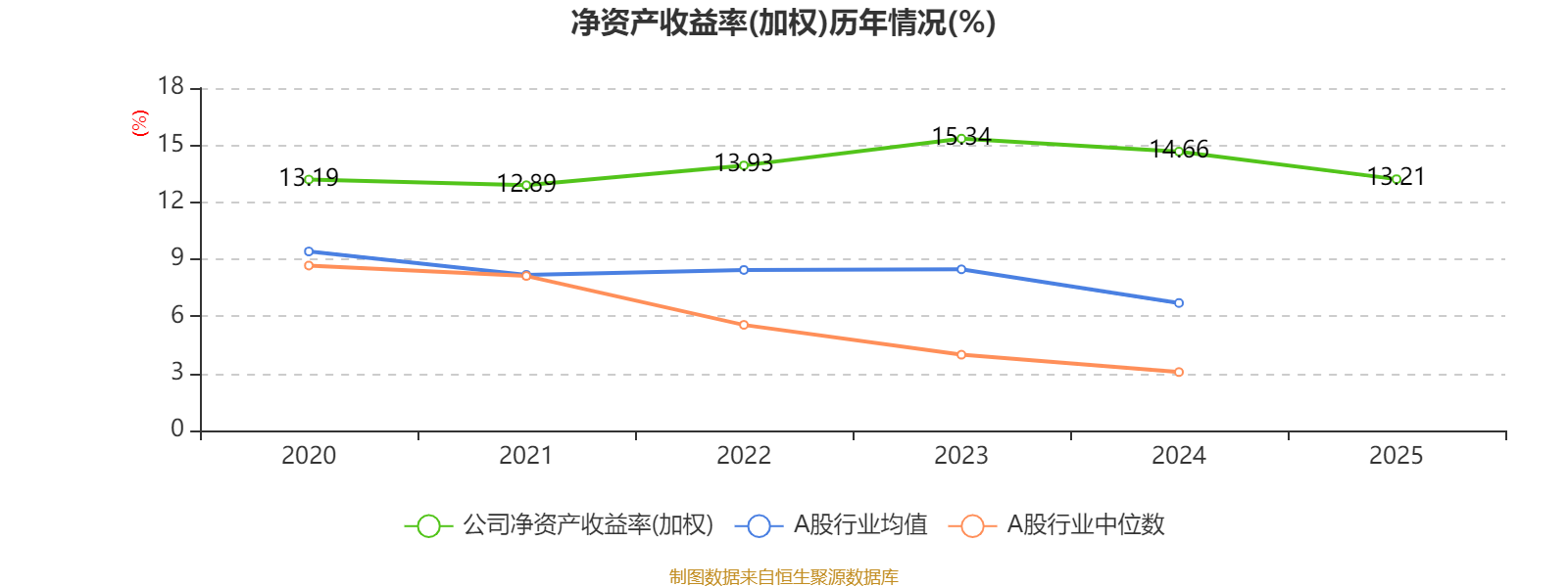 数据显示,2025年公司平均净资产收益率为13.21%,较上年同期下降1.45个百分点。