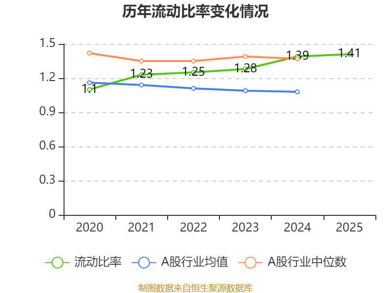 2025年,公司流动比率为1.41,速动比率为1.32。