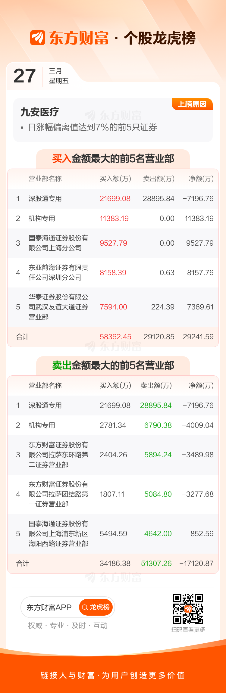 九安医疗(002432)龙虎榜数据(03-27)