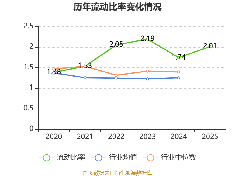 2025年,公司流动比率为2.01,速动比率为1.33。
