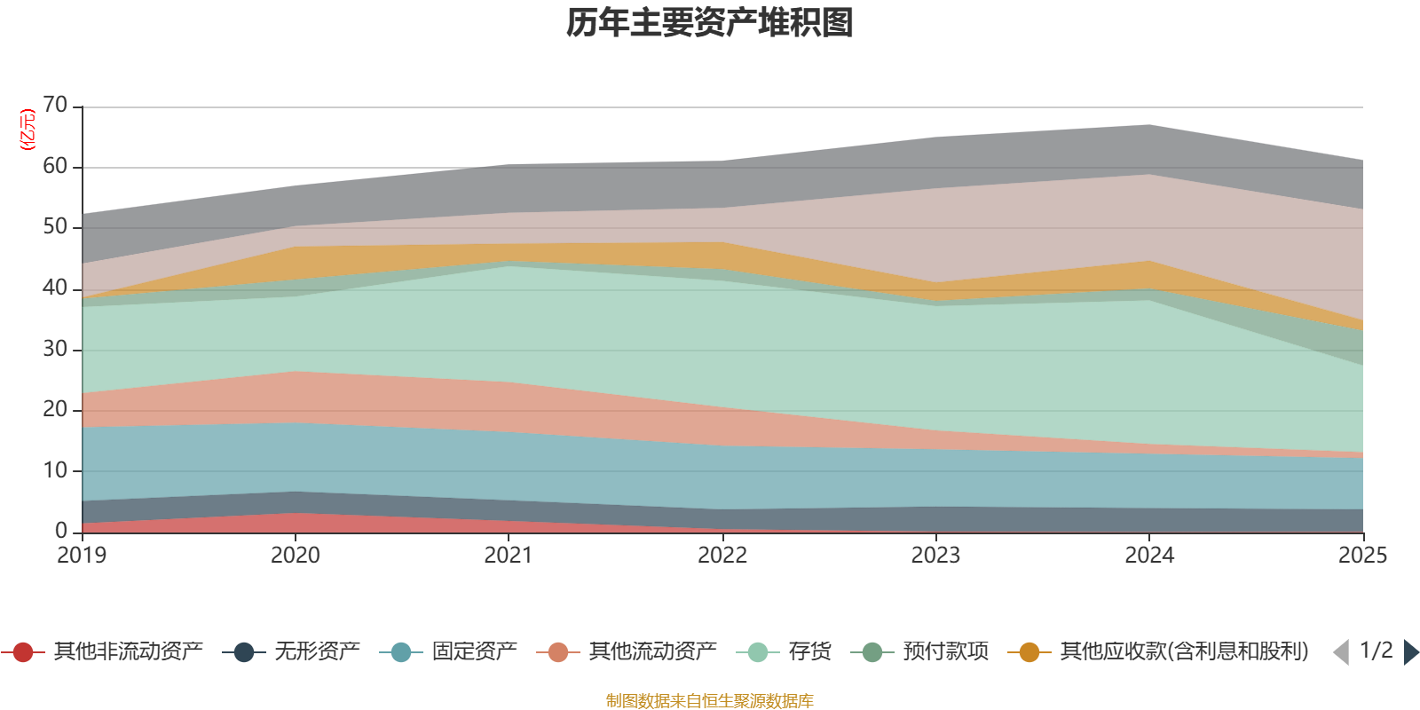 资产重大变化方面,截至2025年末,公司存货较上年末减少39.69%,占公司总资产比重下降11.95个百分点;货币资金较上年末增加28.56%,占公司总资产比重上升8.63个百分点;预付款项较上年末增加189.05%,占公司总资产比重上升6.42个百分点;其他应收款(含利息和股利)较上年末减少61.93%,占公司总资产比重下降3.96个百分点。